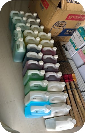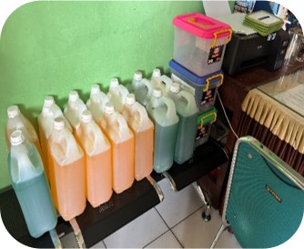 Jenis pembekalan Kesehatan rumah tangga yang kami produksi berbentuk liquid (cairan) seperti cairan pencuci piring / dish washing, sabun cuci tangan / hand soap, pembersih lantai / floor cleaner dan karbol.