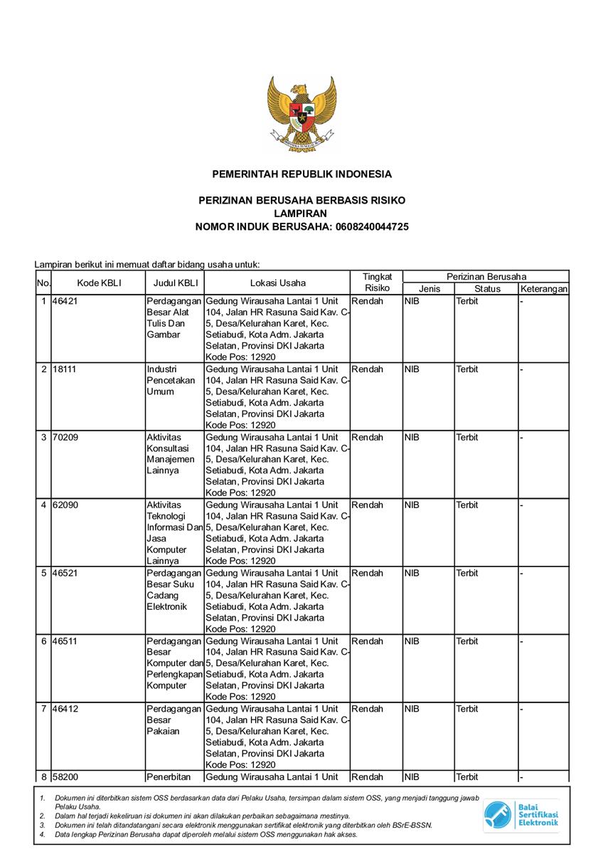 Dengan pengalaman berbagai project kami berkomitmen untuk menyediakan Barang dan Jasa yang dapat disesuaikan dengan kebutuhan Perusahaan (customize) serta menjadi mitra bisnis untuk menunjang berbagai kebutuhan operasional demi mencapai goals dan mengoptimalisasi value perusahaan.